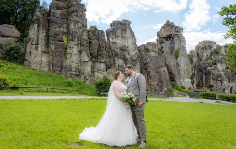 Ob eine romantische Trauung im historischen Stadtkern von Horn, eine freie Zeremonie zwischen den sanften Hügeln und Wäldern, eine stilvolle Feier in einem der charmanten Hotels oder Gutshöfe von Bad Meinberg oder ein einzigartiges Shooting bei den Externsteinen – hier entstehen Hochzeitsmomente, die für immer in Erinnerung bleiben.