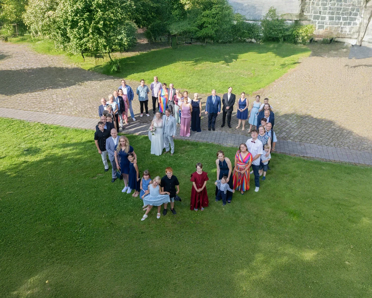 Wenn der Sektempfang an eurer Location stattfindet, entstehen beeindruckende Luftbilder, die eure Liebe, eure Gäste und die Location aus einzigartigen Perspektiven zeigen und euren Erinnerungen eine ganz neue Dimension verleihen. Auch Gruppenfotos aus der Luft, zum Beispiel in herzförmiger Anordnung, lassen Eure Hochzeitsfotos einzigartig werden .
