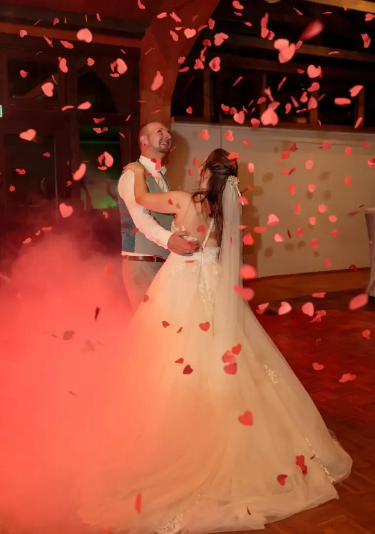 Ab 2026 erweitere ich mein Portfolio klassischer Hochzeitsfotografie um Drohnenaufnahmen. Auch Gruppenfotos aus der Luft, zum Beispiel in herzförmiger Anordnung, lassen sich so besonders schön inszenieren. Wenn der Sektempfang an eurer Location stattfindet, entstehen beeindruckende Luftbilder, die eure Liebe, eure Gäste und die Location aus einzigartigen Perspektiven zeigen und euren Erinnerungen eine ganz neue Dimension verleihen.